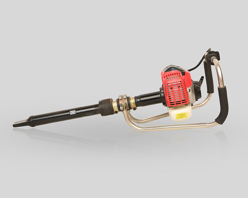 該機由二衝程汽油機、傳動部件、激振總成、減振部件及搗鎬等組成。所有轉動部件均裝有進口滾動軸承。搗鎬頭及鎬庫均采用耐磨材料,並經特殊加工而成。因此保證該機具有高品質、高性能、低故障、長壽命的特點。該機還特別設計了雙重減振係統,減振效果良好,操作者使用舒 適。
